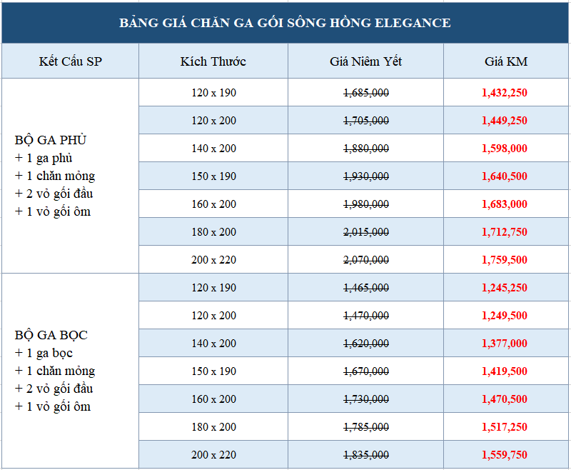 Bảng giá bộ chăn ga gối Sông Hồng Elegance E18-03