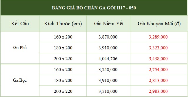 Bảng giá bộ chăn ga gối Sông Hồng H17-050