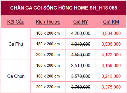 Bộ chăn ga gối Sông Hồng Home H18 – 056