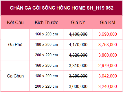 Bộ chăn ga gối Sông Hồng Home H19 – 062