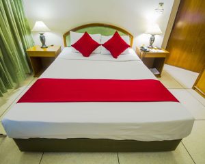 Sự Kết Hợp Nổi Bật: Tấm Trang Trí Màu Đỏ Tươi Và Ga T300 Trắng Trơn Từ Thương Hiệu Đệm Tốt Trong không gian phòng ngủ của các khách sạn, resort hay homestay, cách bài trí và lựa chọn nội thất đóng vai trò quan trọng trong việc tạo ấn tượng và nâng cao trải nghiệm khách hàng.