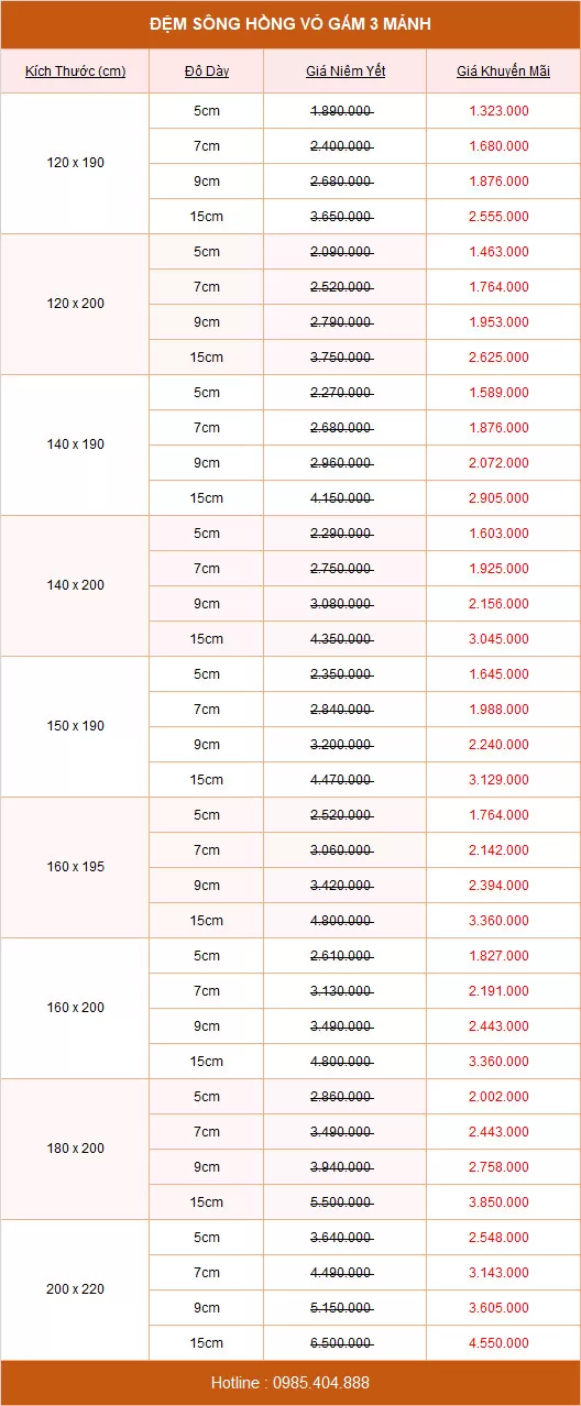 Đánh giá Đệm Sông Hồng vỏ gấm 3 mảnh SH-01